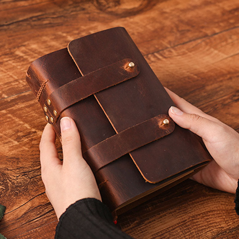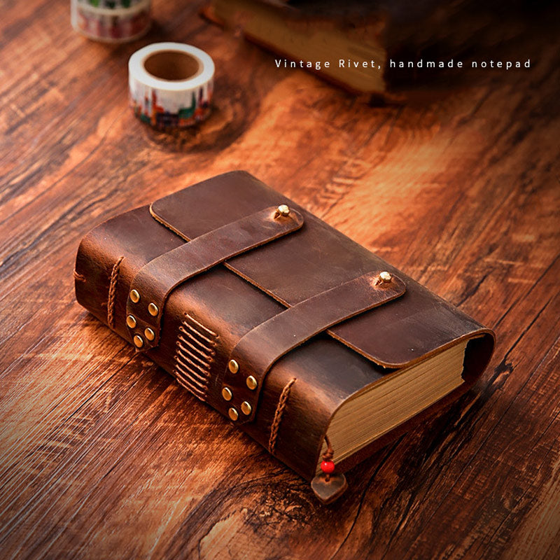 • Nom : carnet en cuir à rivets vintage cousu à la main.