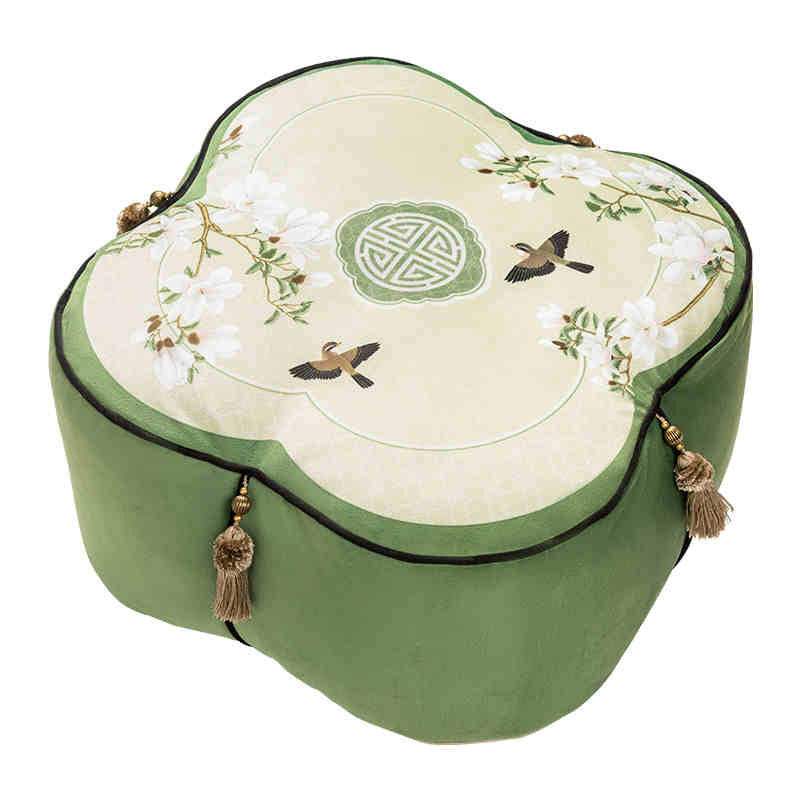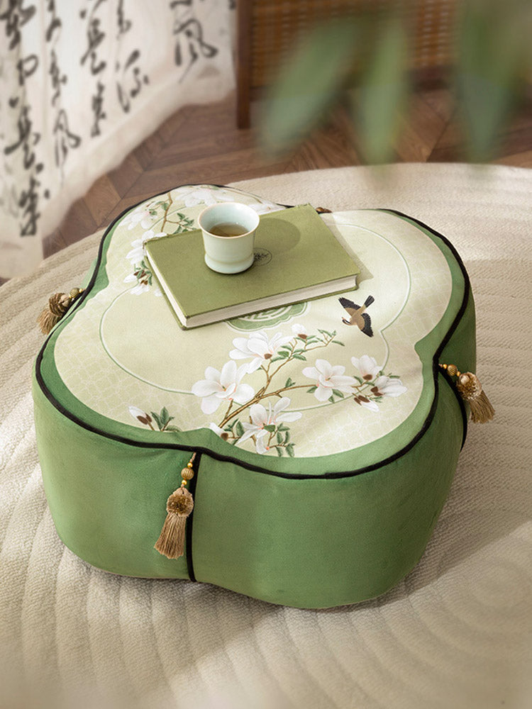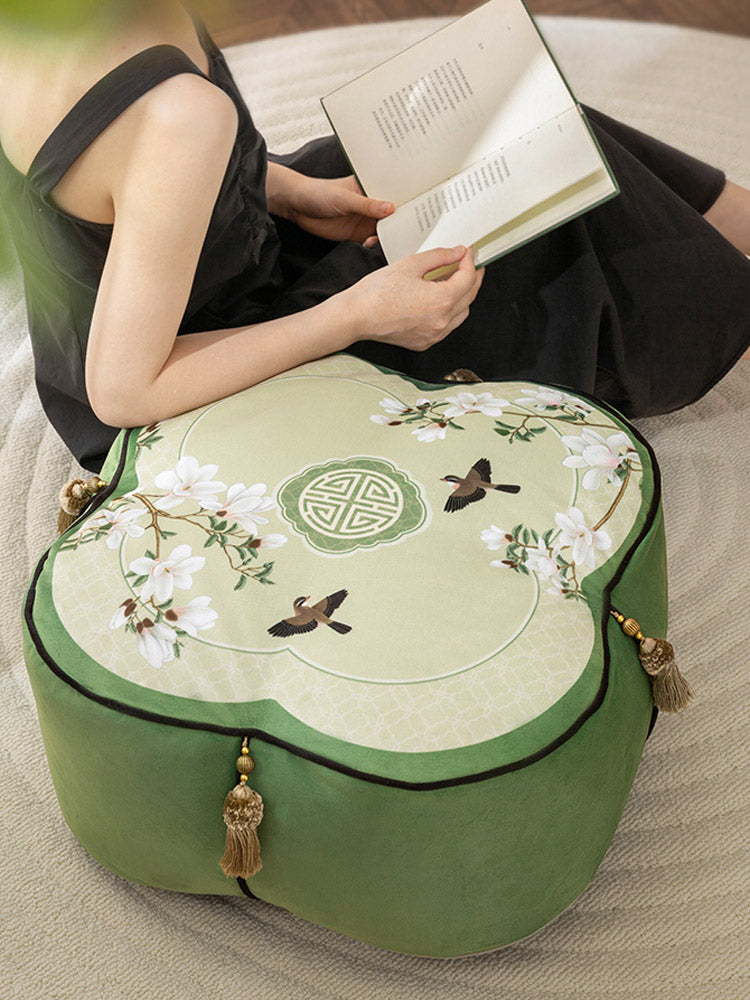 Jade Magnolia at Spring Dawn - Chinese Printed Meditation Pouf Pillow Floor Cushion