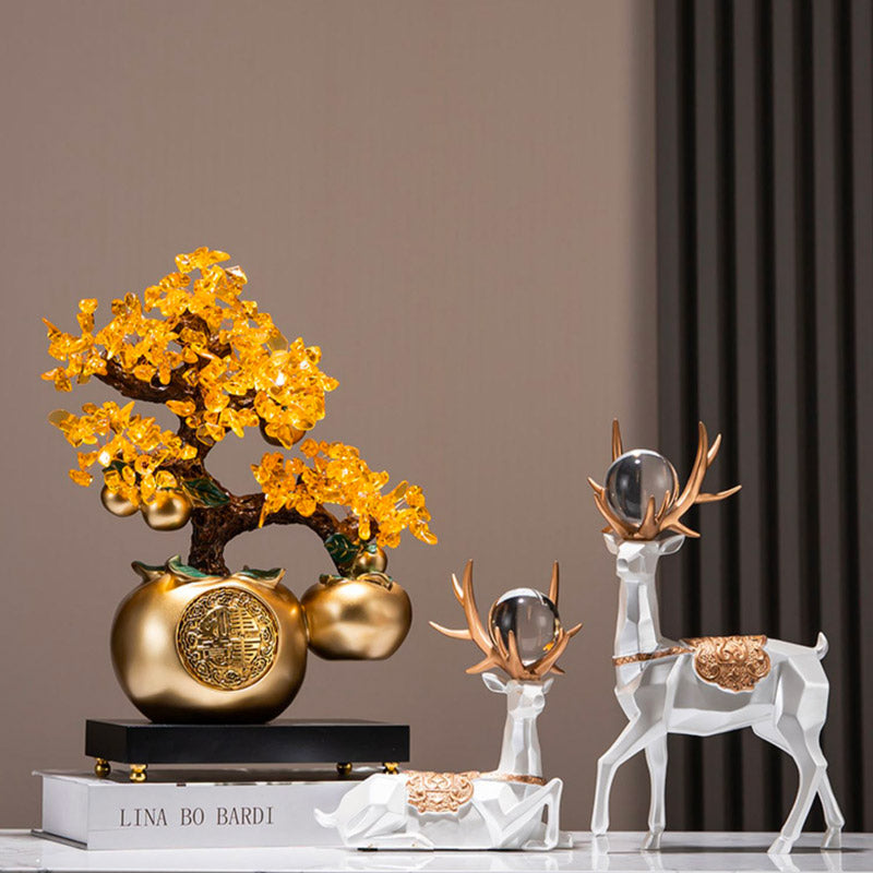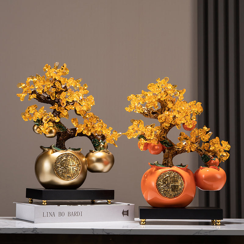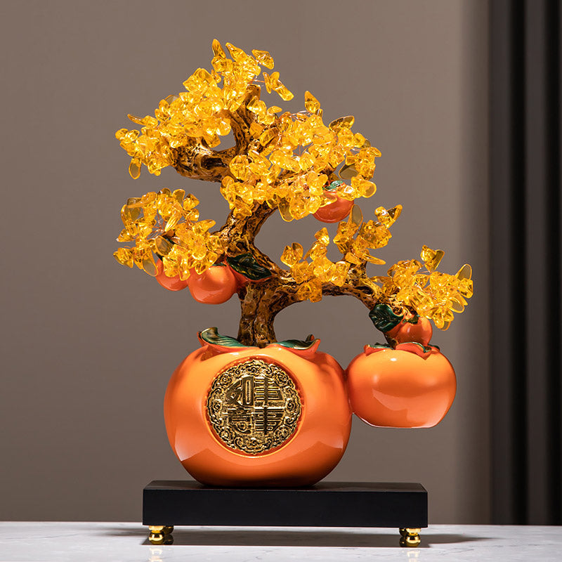 Cette décoration chinoise classique apportera chance et prospérité à votre maison ou bureau. L'arbre de fortune Persimmon「Shi Shi Ru Yi」Money Tree est un choix parfait pour une décoration traditionnelle à conserver dans votre bureau ou comme cadeau d'affaires. Le savoir-faire détaillé et les couleurs riches font de cet ornement décoratif un bel ajout à tout espace de travail.