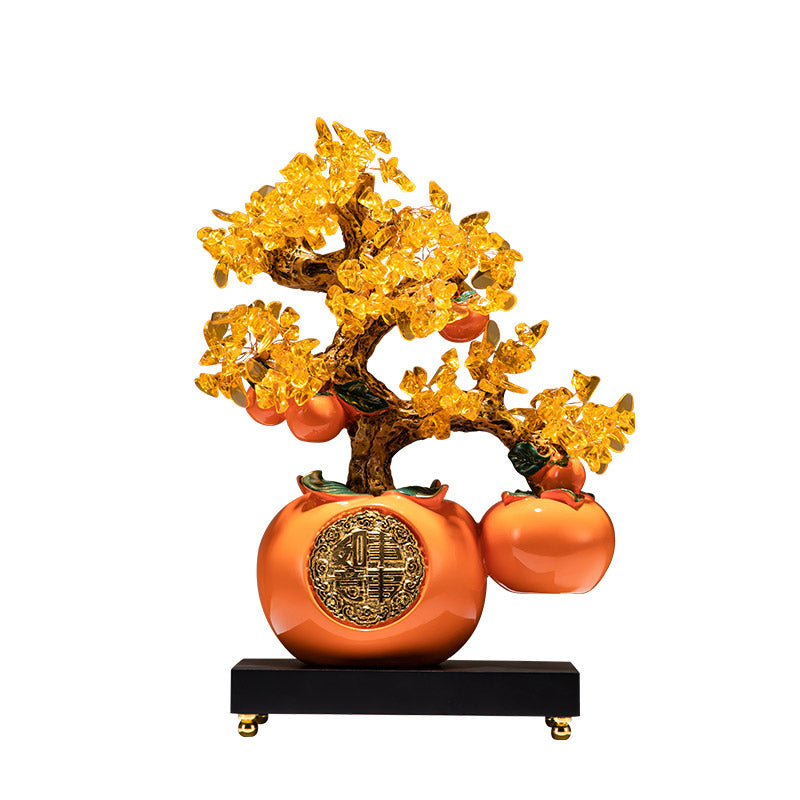 Persimmon 「Shi Shi Ru Yi」 Arbre à argent Arbre de fortune Ornements décoratifs chinois créatifs pour cadeau d'affaires de bureau