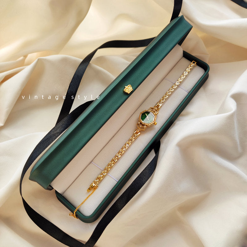 Montre de style baroque à cadran octogonal vert vintage pour femme