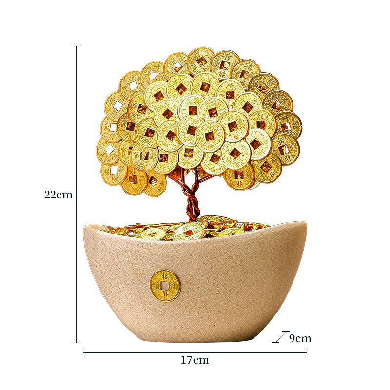 Wealth-Attracting Cat & Prosperity Tree Ornament Creative Chinese Living Room Decor