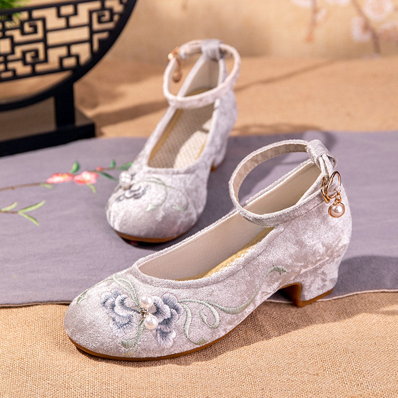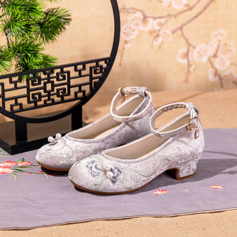 Escarpins à talon moyen avec bride de cheville et broderie pour femmes