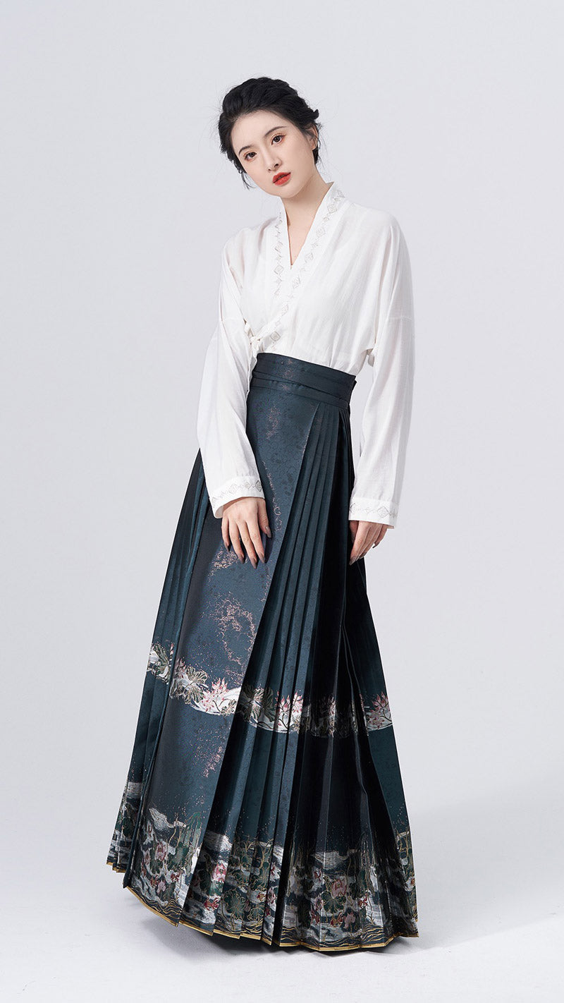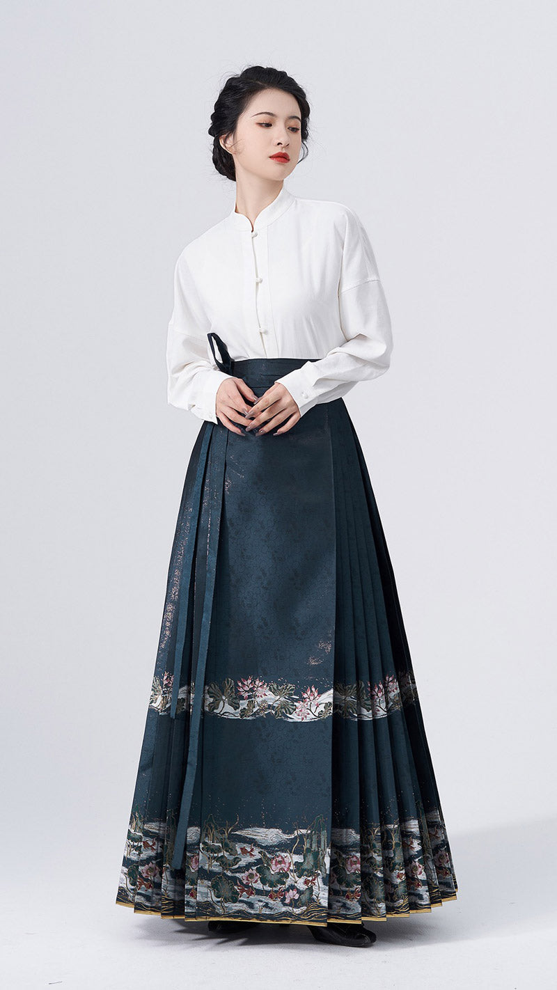 Sea of Flowers Mamianqun- Floral Ma Mian Skirt Inspired by Traditional Chinese Mother-of-Pearl Patterns
