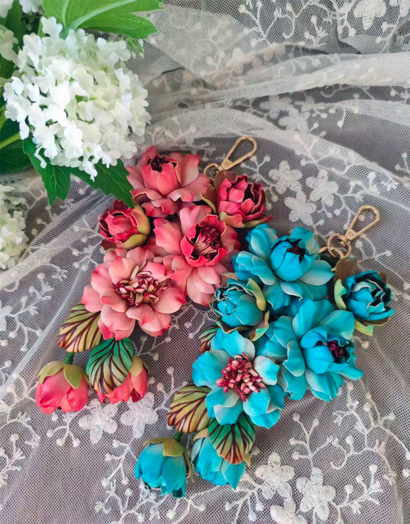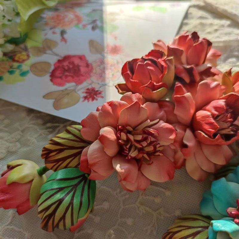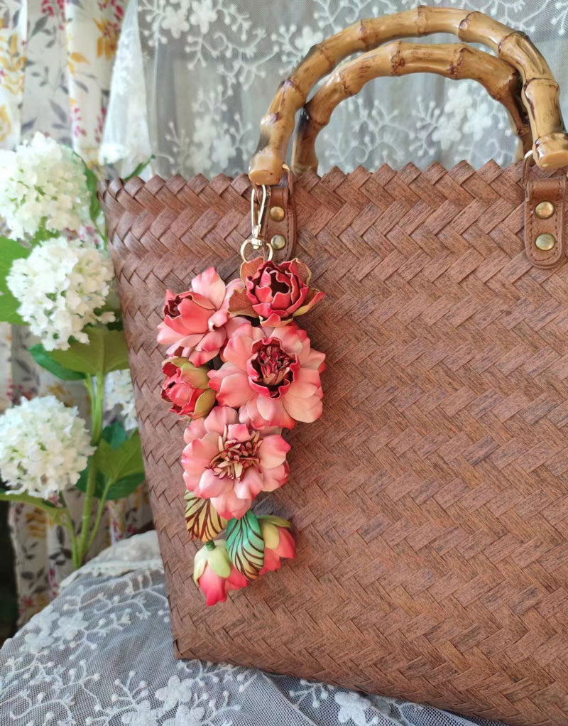 Handmade Three-Dimensional Leather Flower Cluster Bag Charm Bag Accessories