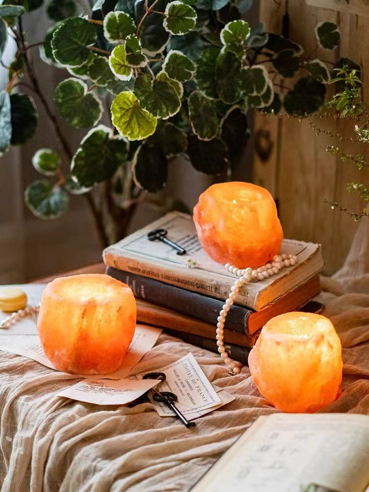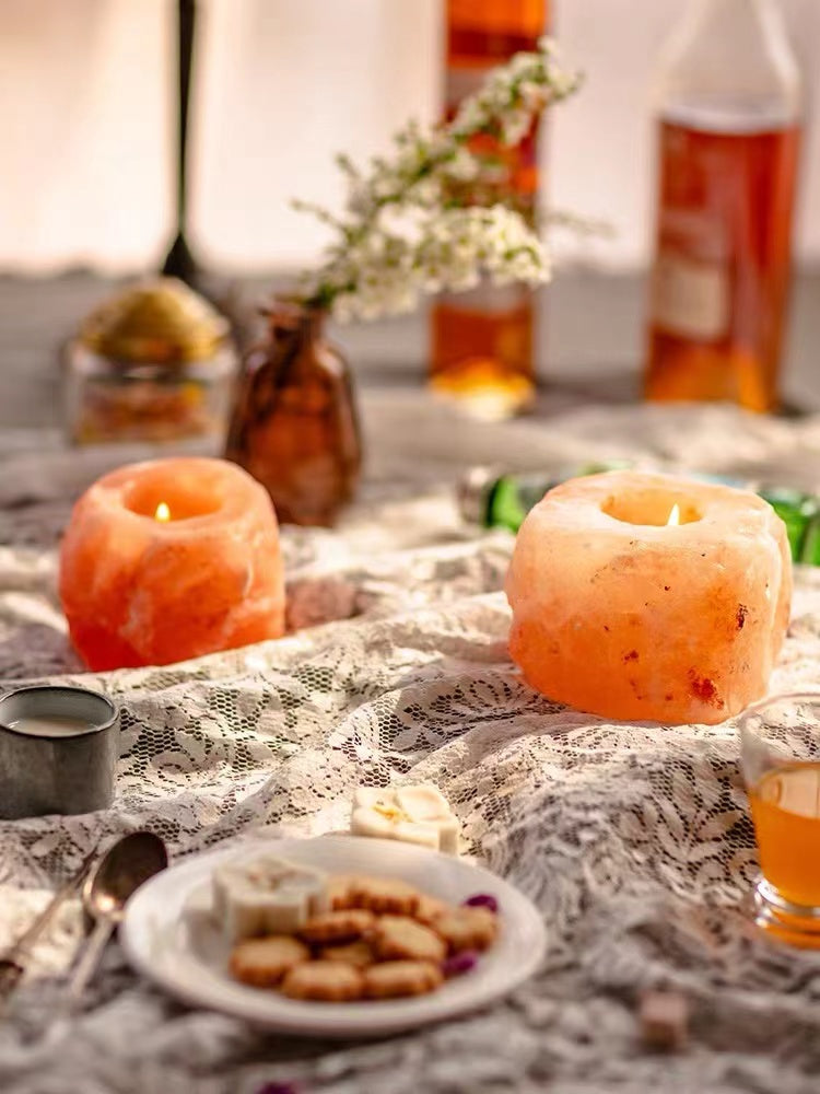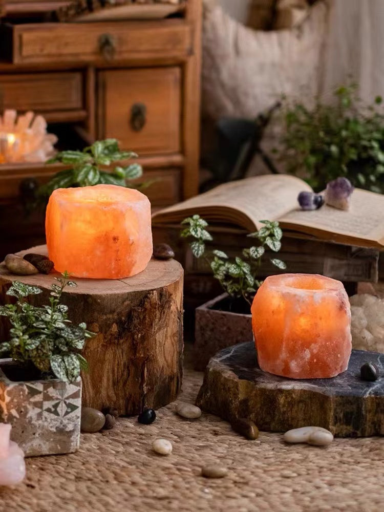 Natural Rose Mineral Salt Candle Holder Salt Lamp for Table Decorations